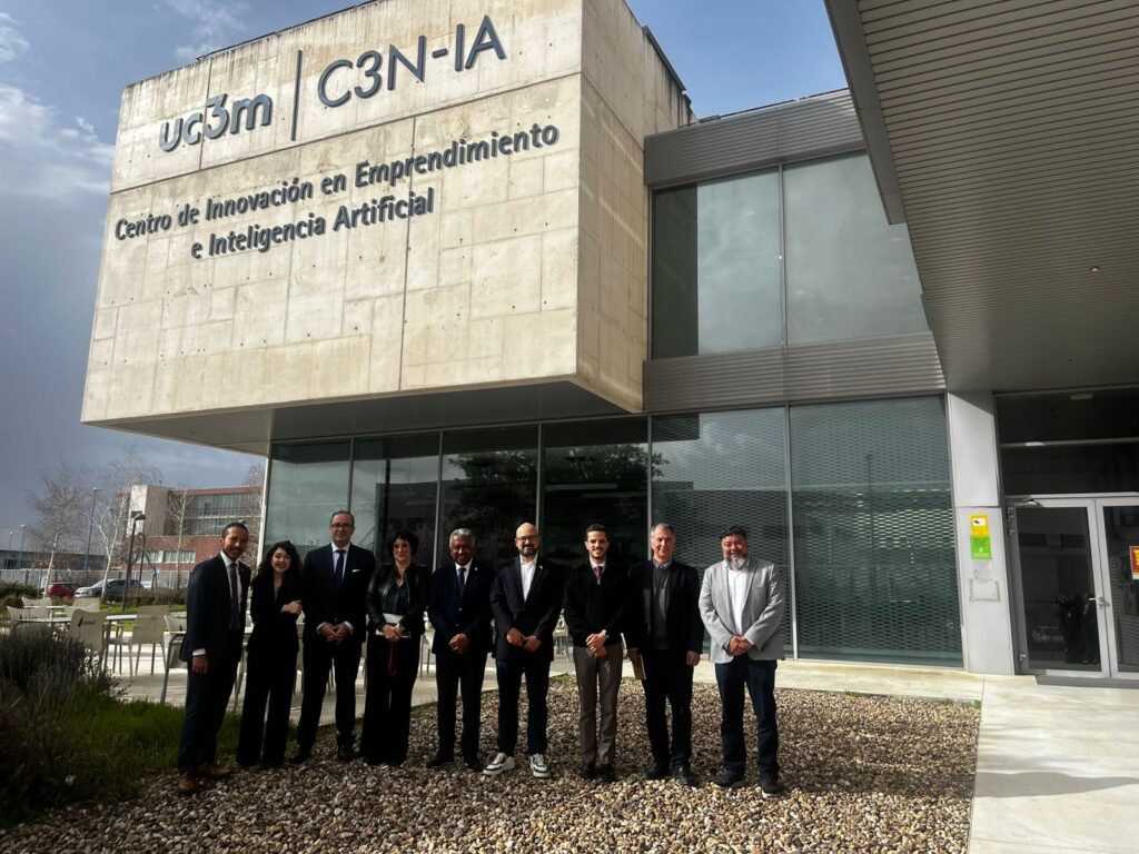 La delegación también sostuvo un encuentro con el C3N-IA (Centro de Innovación en Emprendimiento e Inteligencia Artificial) vinculado a la Universidad Carlos III de Madrid, que incluyó una visita al Parque Científico y Tecnológico de Leganés y conversaciones con el Clúster de Inteligencia Artificial, en el que se intercambiaron experiencias sobre desarrollo de ecosistemas de innovación, emprendimiento tecnológico y transferencia de conocimiento.
